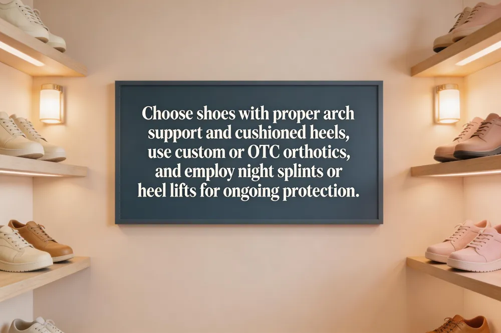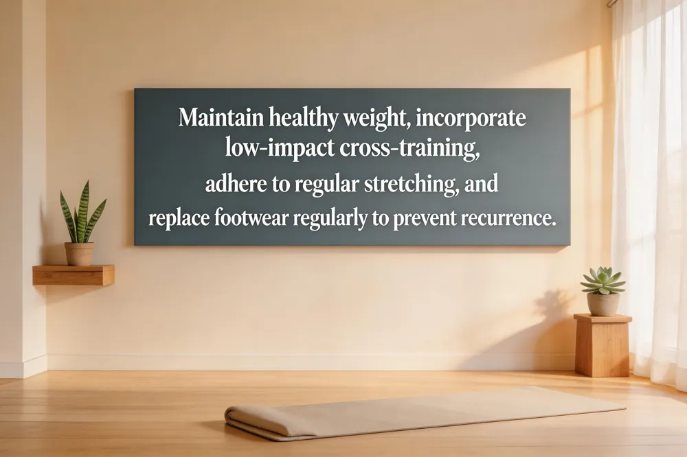 Effective heel‑pain prevention hinges on four pillars. First, weight management and activity moderation lower the load on the plantar fascia; even modest weight loss can reduce heel strain dramatically. Second, replace high‑impact workouts with low‑impact cross‑training such as swimming, cycling, or elliptical work to maintain fitness while sparing the heel. Third, a consistent stretching routine—wall calf stretches, towel‑based plantar‑fascia pulls, and eccentric heel‑raises —performed 2‑3 sets three times daily keeps the gastrocnemius, soleus, and fascia supple and reduces morning stiffness. Fourth, adopt a footwear replacement schedule: swap shoes every 300‑500 miles or every 6‑9 months, choosing models with firm arch support, a cushioned heel counter, and a modest heel height (2‑3 inches).