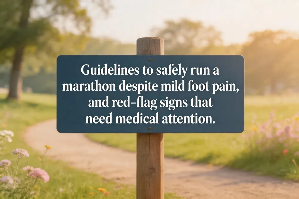 Running a marathon is possible when foot pain is mild, non‑sharp, and not accompanied by swelling, instability, or obvious injury, but you should first have a podiatrist assess the underlying cause. If the pain stems from a minor issue—such as a callus, mild plantar fasciitis, or inadequate footwear—conservative measures like proper shoes, custom orthotics, dynamic warm‑ups, and gradual mileage increases (no more than 10 % per week) can keep you on track. Red‑flag signs that demand immediate medical attention include persistent localized pain, swelling, numbness, or a history of stress fractures; these require imaging and possibly minimally invasive intervention. Integrate preventive foot‑care into your training by scheduling a recovery week every 3–4 weeks, incorporating strength work for hips and ankles, using moisture‑wicking socks, and applying ice after long runs. A structured plan that balances rest, cross‑training, and regular podiatric check‑ups will help you finish the marathon pain‑free.