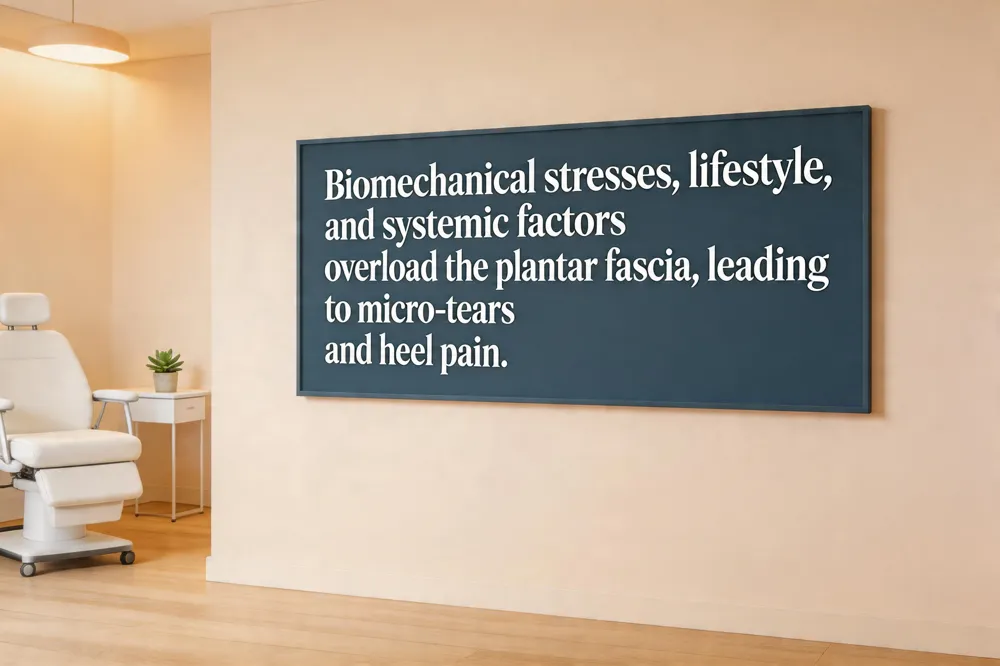 Plantar fasciitis is driven by a mix of biomechanical stresses and lifestyle or systemic contributors.