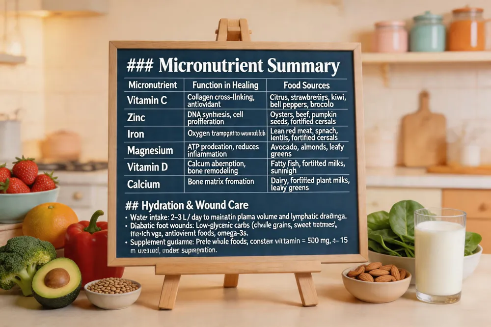 | Micronutrient | Function in Healing | Food Sources |