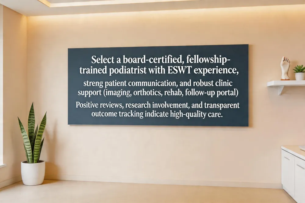 When selecting a podiatrist to guide you through extracorporeal shockwave therapy (ESWT), three key factors should shape your decision: the clinician’s credentials and experience, the quality of patient communication and reviews, and the clinic’s resources and follow‑up support.