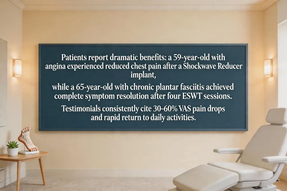 Real‑world clinics across the United States—such as Advanced Foot Care in Northwest Chicago and South Florida and Henry Ford Health—regularly feature patient testimonials describing rapid pain reduction (30‑60 % VAS drop) after 3–5 ESWT sessions. Patients highlight the non‑invasive nature, short 10‑15‑minute outpatient visits, and the ability to resume daily activities without anesthesia. These narratives underscore the growing acceptance of shockwave‑based therapies for both cardiovascular and foot‑ankle conditions.