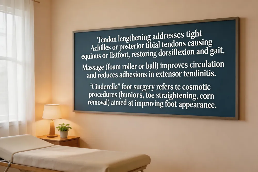 The “Cinderella” foot surgery is a colloquial term for cosmetic foot procedures—such as bunion correction, toe straightening, or removal of corns and calluses—designed to improve the aesthetic appearance of the foot, much like Cinderella’s perfect glass slippers.