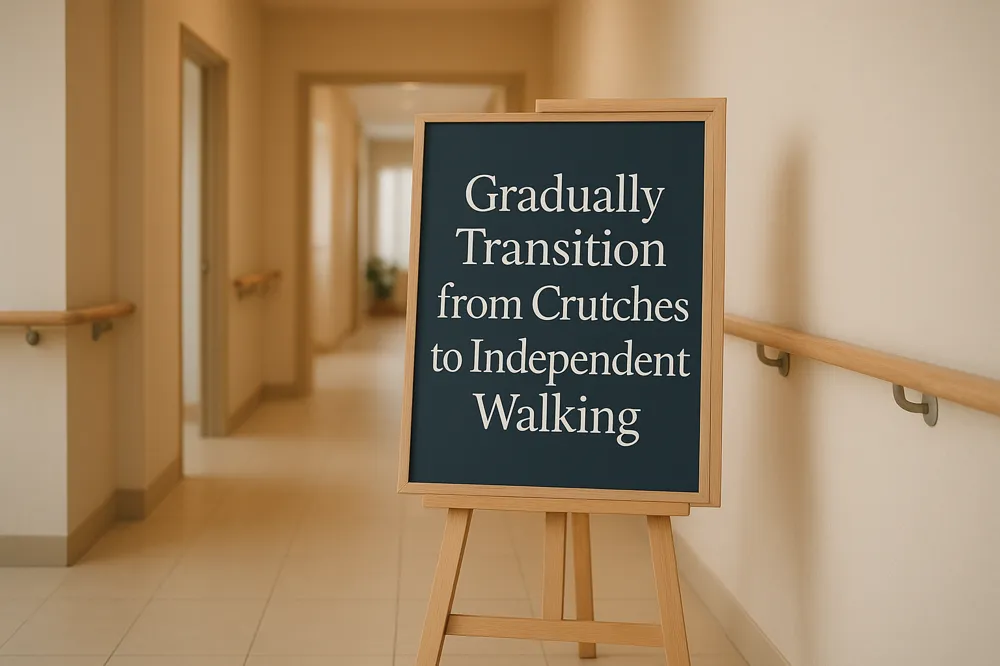 What walking aids support recovery and how do patients transition to independent mobility?