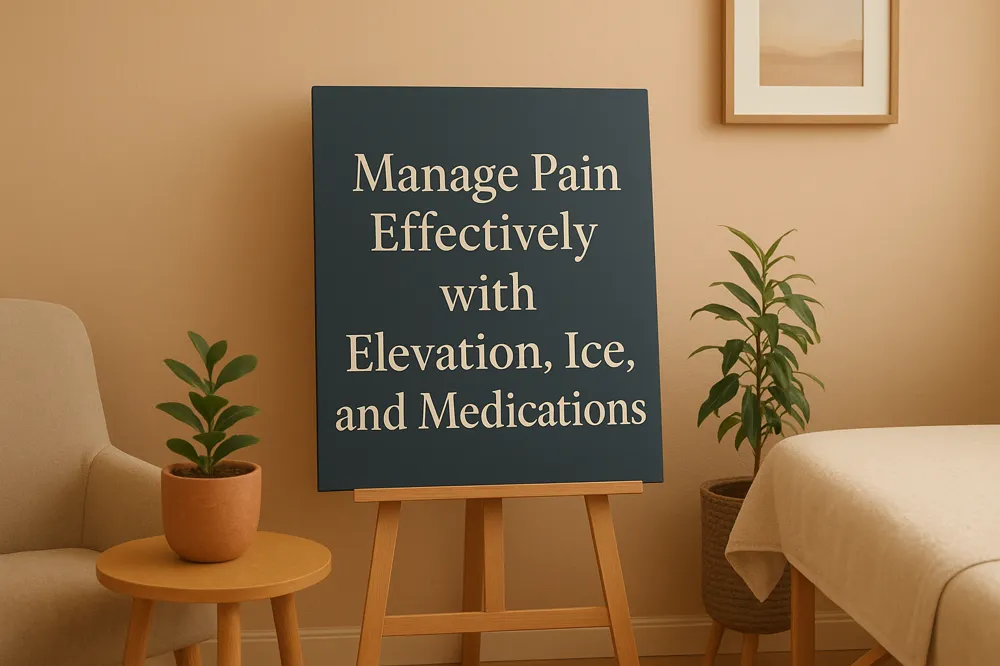 Elevating the foot above heart level for approximately 80% of the day during the initial days post-surgery helps reduce swelling and pain. Applying ice to reduce foot swelling—ideally over a damp cloth to protect the skin—for 15 to 30 minutes every hour can decrease inflammation and soothe pain. Combined with medication adherence, these measures support a more comfortable recovery. More on this can be found at Applying Ice and Elevating Foot After Surgery.