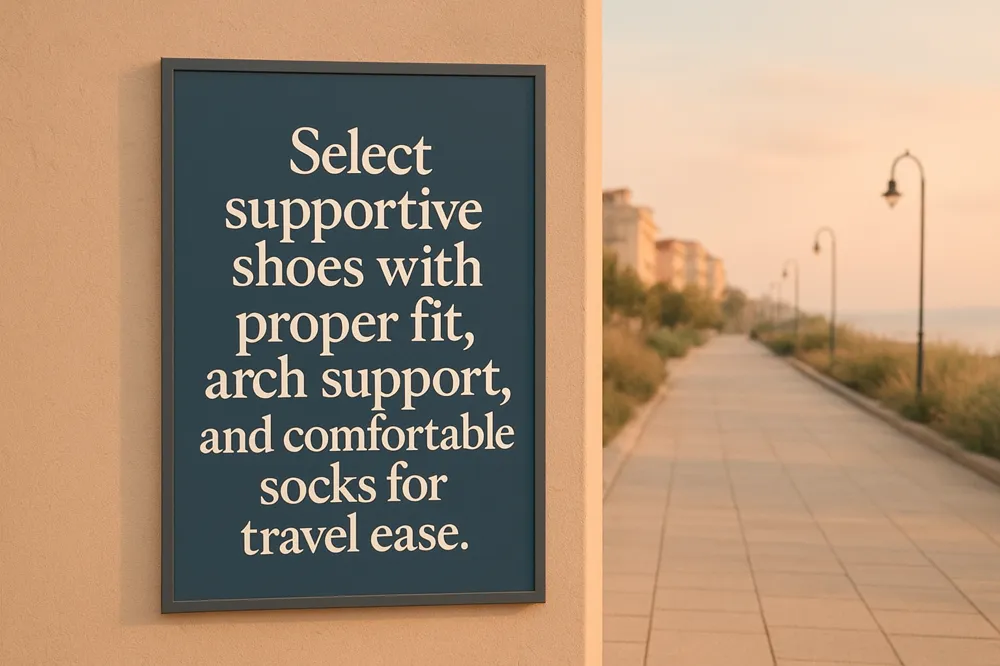 Choosing well-fitting shoes with good arch support, cushioning, and a wide toe box is essential. Breaking in shoes before travel reduces the risk of blisters and discomfort. Complementary items like moisture-wicking socks and compression stockings help manage moisture and promote circulation. Pre-travel foot care including stretching exercises and packing a foot care kit with blister pads, bandages, and moisturizing cream can further protect and soothe feet throughout the journey.
