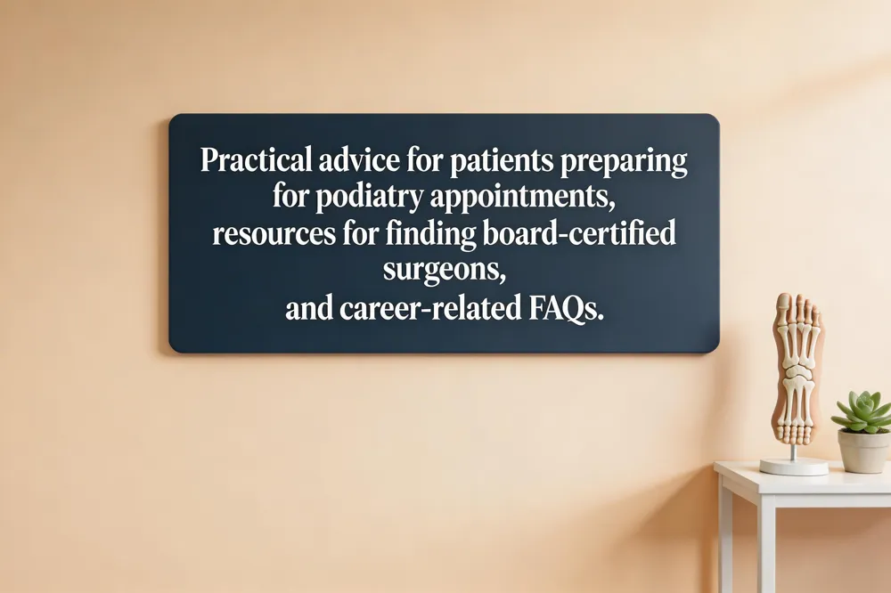 This FAQ exists to give patients clear, evidence‑based answers about foot and ankle health, helping them make informed decisions about treatment and prevention. Board‑certified podiatrists—physicians who have completed a four‑year DPM program, a three‑year residency, and rigorous certification exams—bring the highest level of expertise, ensuring accurate diagnoses, access to advanced minimally invasive technologies such as EPAT shockwave therapy, laser nail treatment, and digital imaging. In the following sections we address the purpose of this guide, why board certification matters for quality care, and we outline the key topics you’ll encounter: common conditions like plantar fasciitis, bunions, hammertoes, diabetic foot complications; innovative therapies and custom orthotics; appointment logistics; insurance, payment options; and tips for optimal foot health. This concise resource empowers you to partner with your podiatrist for better outcomes.